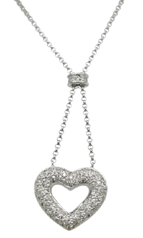 18kt white gold pave diamond heart pendant with chain.
