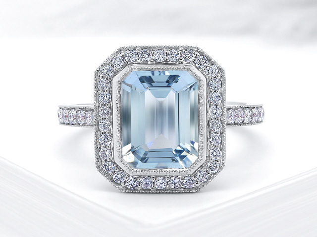 Emerald Cut Aqua 1/1.91ct Round Diamonds 46/.41tw G-H/VS2-SI1