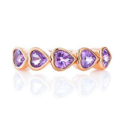 14kt rose gold bezel set pink sapphire heart band.