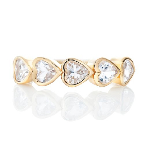 14kt yellow gold white topaz bezel set heart band.