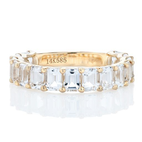 14kt yellow gold emerald cut white topaz band.
