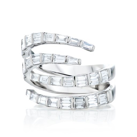 18kt white gold 4 row baguette diamond coil ring