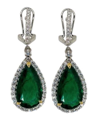18kt two-tone pearshape emerald and diamond earrings