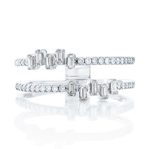 18kt white gold round and baguette diamond insert ring