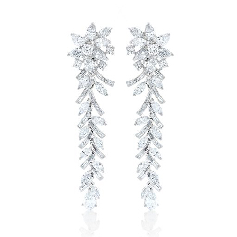 18kt white gold pearshape, marquise, baguette and round diamond hanging earrings
