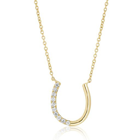 14kt yellow gold small 1/2 way diamond horse shoe pendant with chain.