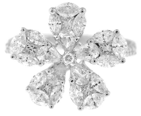 18kt white gold diamond flower ring.