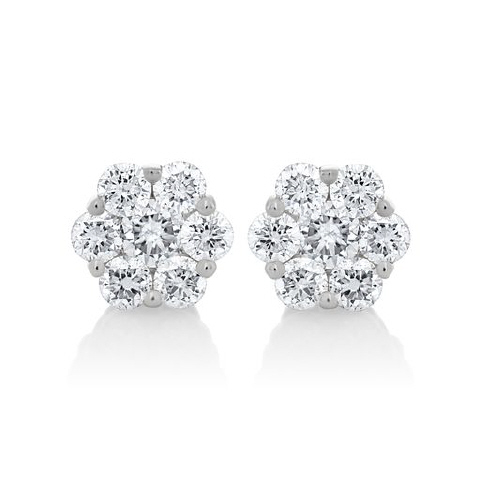 14kt white gold small diamond flower stud earrings