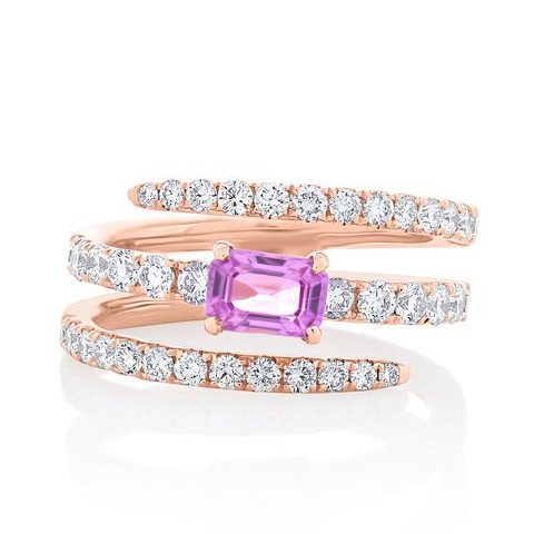 Emerald Cut Pink Sapphire .71ct Round Diamonds 38/.91tw G-H/VS2-SI1
