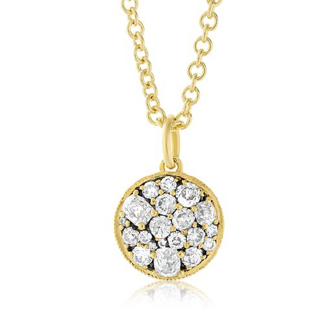 18kt yellow gold NYC Cobblestone circle pendant with chain.