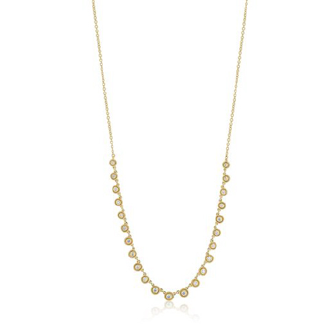 14k yellow gold bezel diamond necklace.