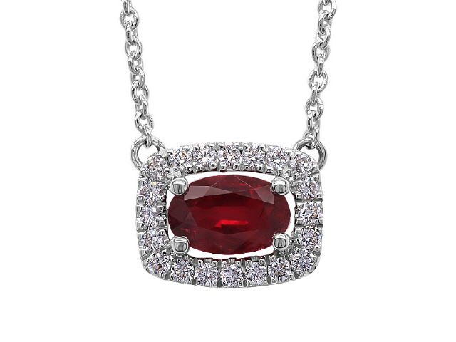 18kt white gold ruby and diamond pendant with chain
