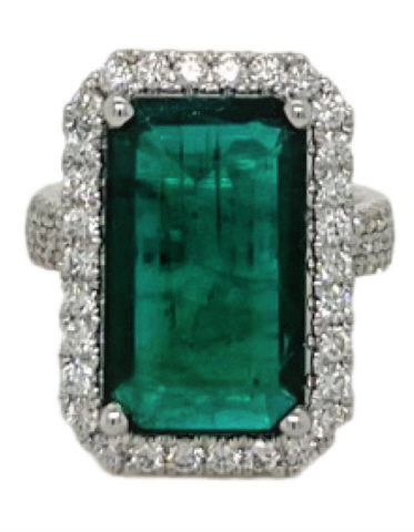 18kt white gold emerald and diamond halo ring