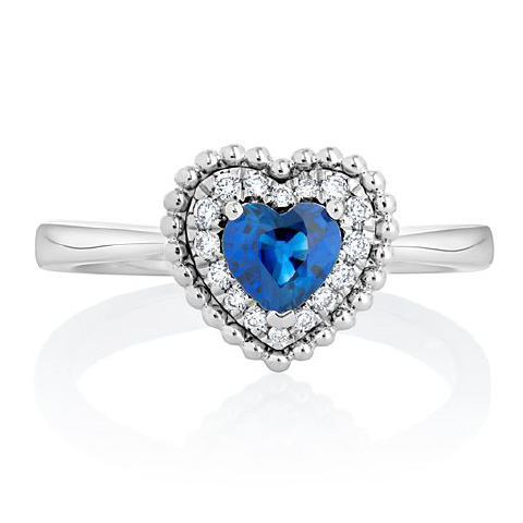14kt white gold diamond and sapphire heart ring