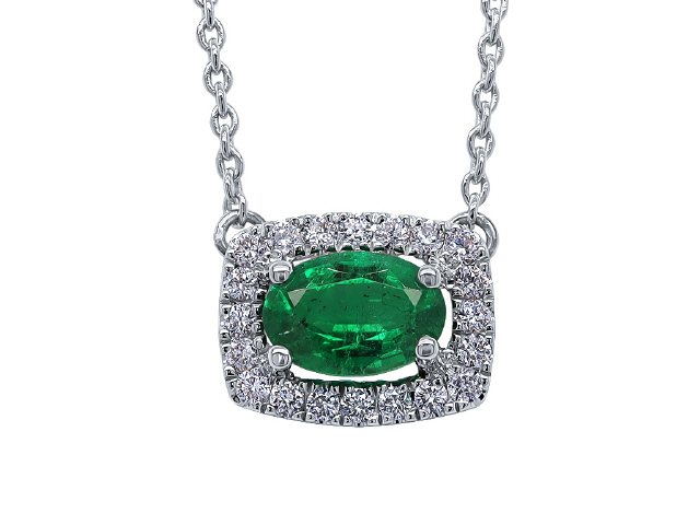 18kt white gold emerald and diamond pendant with chain
