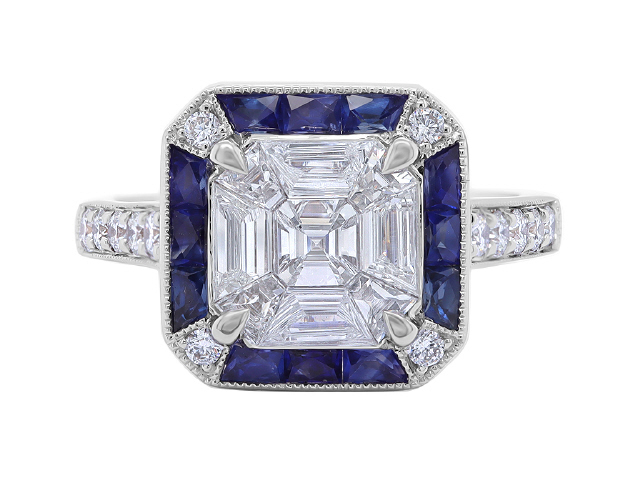 Round/Baguette Diamonds 23/.90tw F-G.VS2-SI1 Carre Cut Sapphires 12/1.10tw