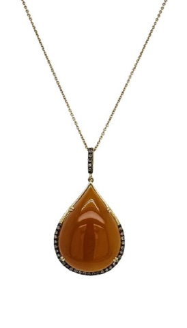 14kt yellow gold agate and diamond pendant with chain