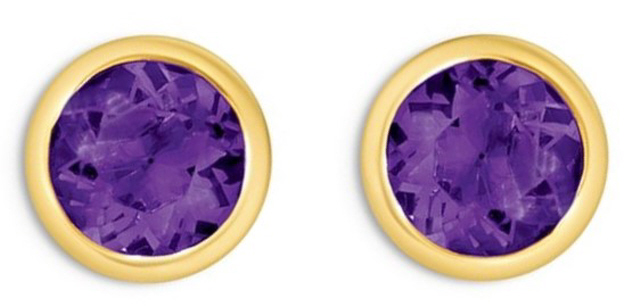 14kt yellow gold bezel set amethyst stud earrings