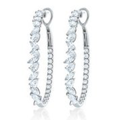 18kt white gold pearshape, marquise and round diamond hoop earrings