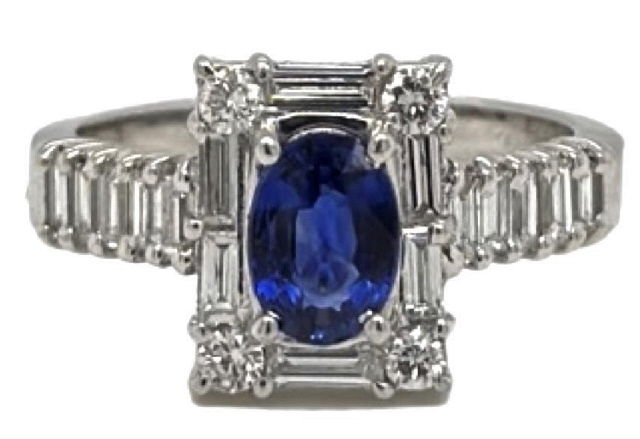 18kt White gold diamond and oval sapphire ring