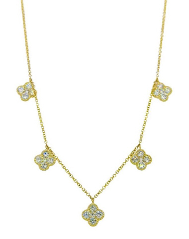 14kt yellow gold diamond 5 station clover necklace