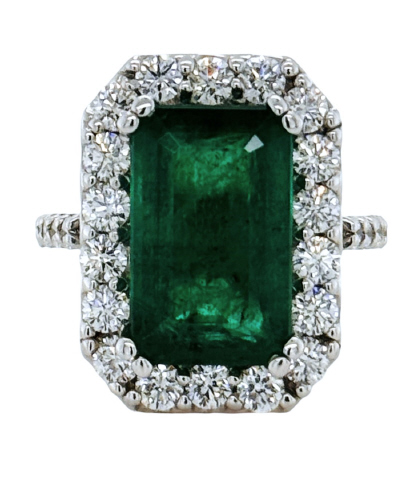 Emerald 6.70ct GIA Report#2225742390 15.28x9.58x5.90mm Round diamonds 30/2.07tw