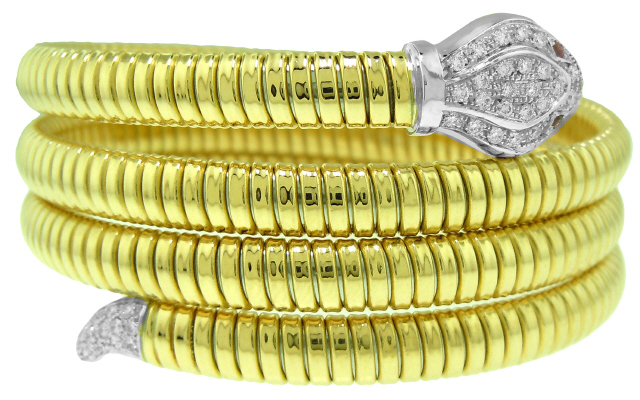 18kt two-tone 3-row serpentino diamond bangle bracelet.
