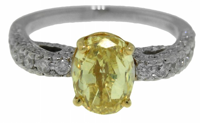 18kt two-tone fancy yellow oval diamond and pave diamond ring