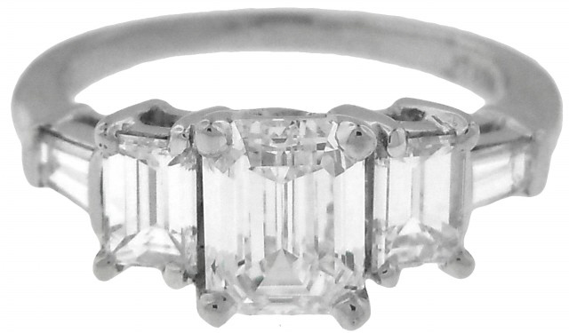 Emerald cut diamond=1/1.05cts F VS1 EGL 2702277027 Emerald cut diamonds=2/.60tw F VS Baguette cut diamonds=2/.25tw+/- F VS