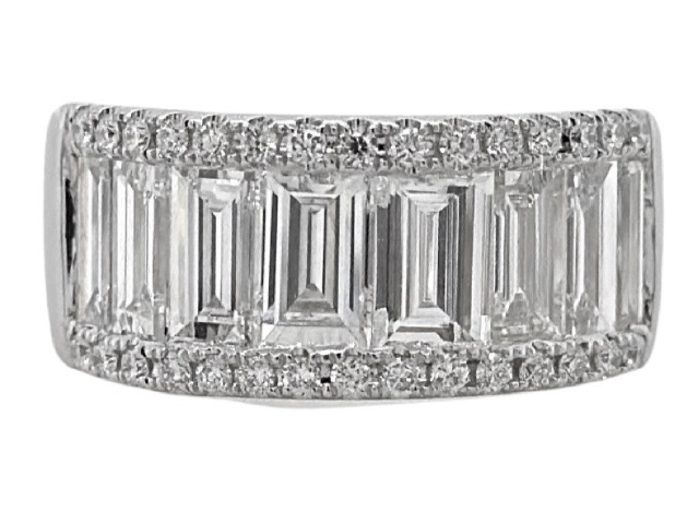 18kt white gold baguette and round diamond ring