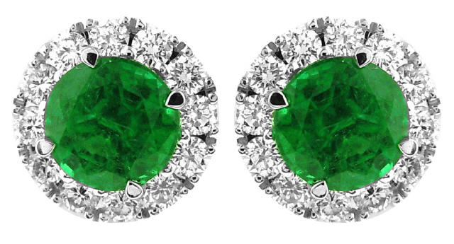 Round Emeralds 2/1.07tw Round Diamonds 24/.40tw G-H/VS2-SI1