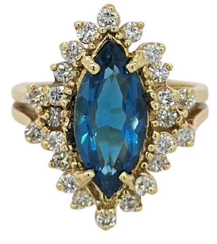 Maqruise Blue Topaz 7.50ct+/- Round Diamonds 24/.80tw+/- H-I/SI