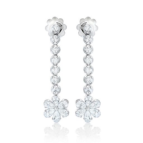 18kt white gold hanging diamond flower earrings.