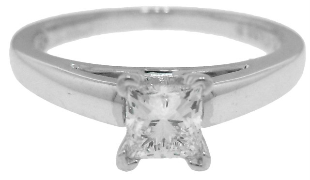 14kt white gold/platinum solitaire with one modified princess cut diamond .51ct
