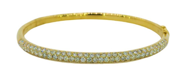 14kt yellow gold 3-row pave diamond bangle bracelet.
