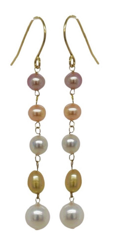 14kt yellow gold hanging multi-color pearl earrings.