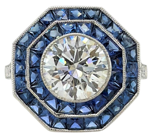 Lab Grown Round Diamond 2.63ct G-VS2 IGI Report #LG544242409 Carre Cut Sapphires 48/2.19tw Natural Round Diamonds 8/.13tw G-H/VS2-SI1