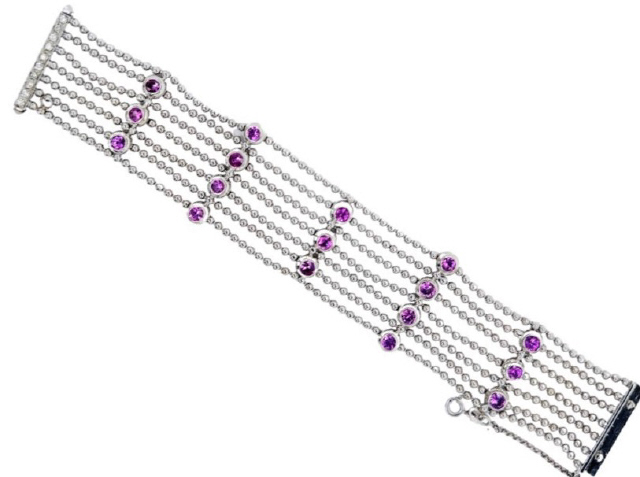 18kt white gold 7 links pink sapphire and diamond bracelet