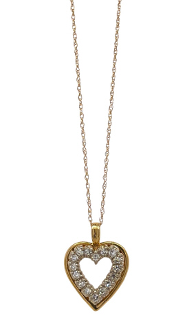 14kt yellow gold diamond heart pendant with chain.