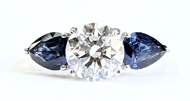 Lab Grown Round Diamond 1.62ct F-VS1 IGI Report #LG569324602 Pear Shape Sapphires 2/1.78tw
