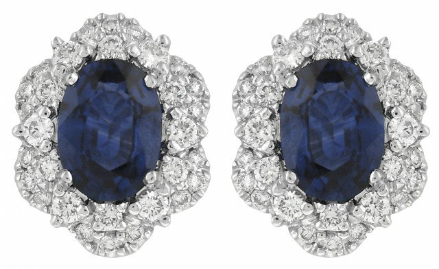 Oval Sapphires 2/1.84tw Round Diamonds 60/.54tw G-H/VS2-SI1