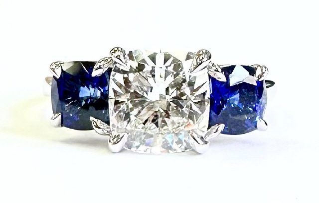 Lab Grown Cushion Diamond 2.19ct F-VS1 IGI Report #LG5844383238 Cushion Cut Sapphires 2/2.17tw