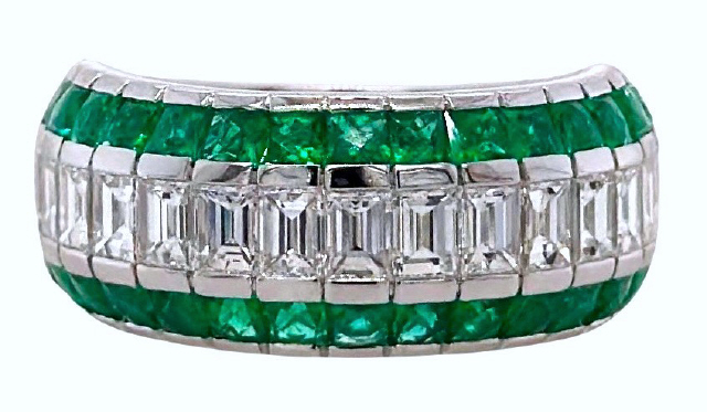Carre Cut Emeralds 30/1.74tw Baguette Diamonds 15/1.92tw G-H/VS2-SI1