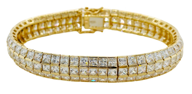 14kt yellow gold 3 row cz bracelet
