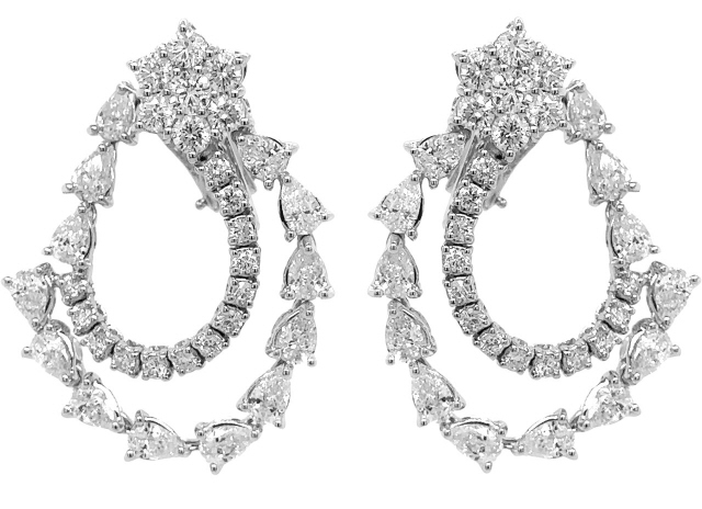 18kt white gold pearshape and round diamond earrings