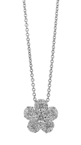18kt white gold marquise and princess cut diamond illusion pendant with chain