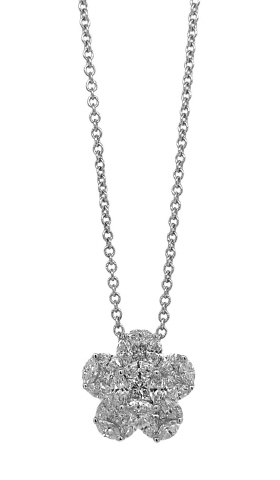 18kt white gold marquise and princess cut diamond illusion pendant with chain