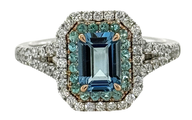 18kt white/rose gold aqua, paraiba tourmaline and diamond ring.