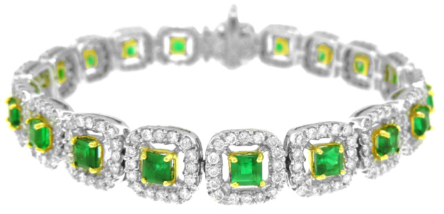 18kt white and yellow gold emerald and diamond bracelet
