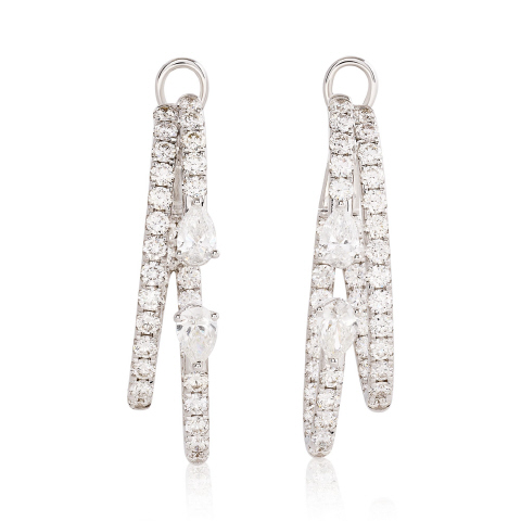 18kt white gold double row diamond hoop earrings with round and pear shape diamonds